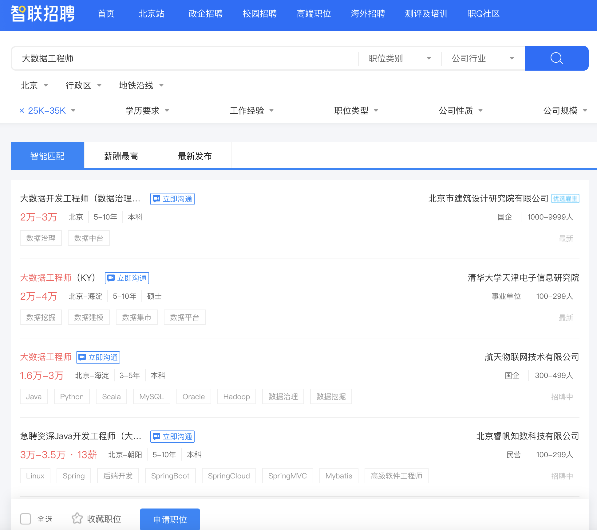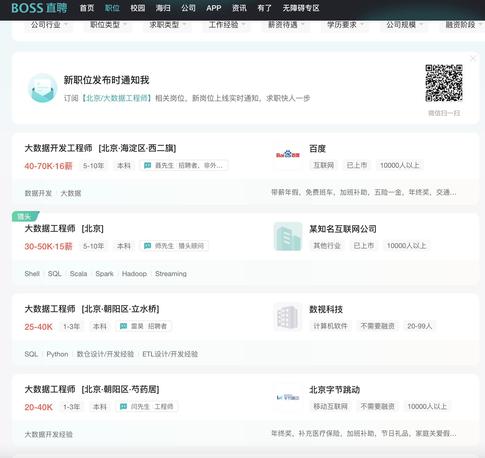 大数据研发可以适应的岗位不只是大数据工程师一种,甚至可以延伸很多岗位,在我们就业的时候 可以有更多的选择和更好的扩展。可以适应的岗位有: